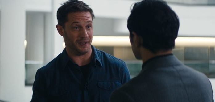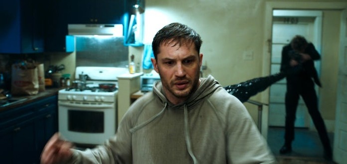 A konečně přecházíme do tuhého, tedy do scény, kdy se v Eddieho bytě objeví parta bouchačů v čele s Rolandem Treecem (Scott Haze), a s tím, že Carlton Drake chce svůj majetek zpět. Evidentně tak Drake o Brockovi ví, a nabízí se taky možnost, že Brock nějakým způsobem symbionta ukradl, i když to zní nepravděpodobně. Další mojí teorií pak je, že se Brock v první části filmu dobrovolně přihlásí do experimentů v rámci svého vyšetřování, případně se do nich nějak jinak zaplete, společnost ho infikuje symbiontem, a on poté i se symbiontem uteče - proto za ním společnost pošle svoje bouchače. Jak myslíte vy, že se Eddie k symbiontovi dostane?